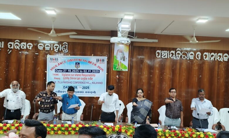 ଭବାନୀପାଟଣା: କଳାହାଣ୍ଡି ଜିଲ୍ଲାସ୍ତରୀୟ ଦୁର୍ନୀତି ନିବାରଣ ସଚେତନତା ସପ୍ତାହ ଜିଲ୍ଲା ପ୍ରଶାସନ ଓ ଦୁର୍ନୀତି ନିବାରଣ ବିଭାଗ ତରଫରୁ କଳାହାଣ୍ଡି ଜିଲ୍ଲା ପରିଷଦର ସମ୍ମିଳନୀ ଗୃହରେ ଜିଲ୍ଲାପାଳ ପାୱାର ସଚିନ ପ୍ରକାଶ ଙ୍କ ଅଧ୍ୟକ୍ଷତାରେ ପାଳନ କରାଯାଇଥିଲା । ଏହି ଅବସରରେ,ଛାତ୍ରଛାତ୍ରୀ, ଜିଲ୍ଲା ସ୍ତରୀୟ ଅଧିକାରୀ, ସ୍ୱୟଂ ସହାୟକ ଗୋଷ୍ଠୀ, ସ୍ଵେଚ୍ଛାସେବୀଙ୍କୁ ନେଇ ଜିଲ୍ଲାପାଳଙ୍କ କାର୍ଯ୍ୟାଳୟରୁ ଉପଜିଲ୍ଲାପାଳଙ୍କ କାର୍ଯ୍ୟାଳୟ ଦେଇ, ପୁରୁଣା ବୁସଷ୍ଟାଣ୍ଡ, ଘୋଡାଘାଟ ଛକ, ନୂଆବସଷ୍ଟାଣ୍ଡ, ଜିଲ୍ଲା କାରାଗାର ଦେଇ ଜିଲ୍ଲାପରିଷଦ କାର୍ଯ୍ୟାଳୟ ପର୍ଯ୍ୟନ୍ତ ଏକ ସଚେତନତା ଶୋଭାଯାତ୍ରା ସହର ପରିକ୍ରମା କରିଥିଲା।ସଚେତନତା ଶୋଭାଯାତ୍ରା ପରେ ଜିଲ୍ଲାପାଳ ପାୱାର ସଚିନ ପ୍ରକାଶଙ୍କ ଅଧ୍ୟକ୍ଷତାରେ ଜିଲ୍ଲାପରିଷଦ ସମ୍ମିଳନୀ ଗୃହରେ ଏକ ସଚେତନତା ସଭା ଓ ପୁରସ୍କାର ବିତରଣ ଉତ୍ସବ ଅନୁଷ୍ଠିତ ହୋଇଥିଲା । ଏଥିରେ ସମ୍ମାନିତ ଅତିଥି ଭାବେ ଭି.ସି ମା ମାଣିକେଶ୍ଵରୀ ବିଶ୍ୱବିଦ୍ୟାଳୟ କଳାହାଣ୍ଡି ଡଃ ନିବେଦିତା ନାଥ, ଅତିରିକ୍ତ ଜିଲ୍ଲାପାଳ