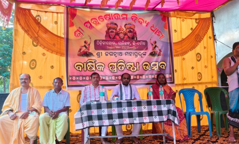 ଆଜି କାର୍ତ୍ତିକ ପୂର୍ଣ୍ଣିମା ଅବସରରେ ବୌଦ୍ଧ ଜିଲ୍ଲାର ଚାରିଛକ ସ୍ଥିତ ଶ୍ରୀପୁରୁଷୋତ୍ତମ ଦିବ୍ୟଧାମ ଜଗନ୍ନାଥ ମହାପ୍ରଭୁଙ୍କ ୧୫ତମ ପ୍ରତିଷ୍ଠା ମହାଆଡମ୍ବର ରେ ପାଳିତ ହୋଇଯାଇଛି । ଏହି ଅବସରରେ ପ୍ରଥମେ ଜଗନ୍ନାଥ ମହାପ୍ରଭୁଙ୍କ ସକାଳ ଧୂପ ପରେ କଳସ ଯାତ୍ରା ରେ ଭକ୍ତ ମାନେ ଯାଇ ନଦୀ ରୁ ପାଣି ଆଣି ନିଜ ମାନସିକ ପୂରଣ ନିମନ୍ତେ ଶୁଭକଳସ ସ୍ଥାପନ କରିଥିଲେ । ପରେ ଭକ୍ତ ଙ୍କ ମାନସିକ ପୂରଣ ନିମିତ୍ତ ହୋମଯଜ୍ଞ, ବିଷ୍ଣୁସହସ୍ର ନାମ ଓ ହନୁମାନ ଚାଲିଶା ପାଠ ସହ ୧୦୮ଆଳତି କରାଯାଇଥିଲା । ପରେ ଶନିଦେବ ଙ୍କ ମନ୍ଦିର ରେ ନବଗ୍ରହ ମୃତ୍ତି ଯଥା ରୀତିନୀତି ଓ ହୋମଯଜ୍ଞ ସହ ସ୍ଥାପନ କରାଯାଇଥିଲା । କର୍ତ୍ତା ଅର୍ଜୁନ କହଁର ଓ ଦିଲ୍ଲୀପ ପ୍ରଧାନ ଙ୍କ ଦ୍ଵାରା ସମସ୍ତ ଯଜ୍ଞ କାଯ୍ୟ ସମ୍ପାଦନ ହୋଇଥିବା ବେଳେ କୃଷ୍ଣଚନ୍ଦ୍ର ପାଢ଼ୀ ,ଜିତେନ୍ଦ୍ର ନାଥ ଦାଶ ,ମନ୍ଦିର ପୁରୋହିତ ନାରାୟଣ ନନ୍ଦ ଚନ୍ଦ୍ରଶେଖର ପୁରୋହିତ ପୂଜା ସମ୍ପାଦନ କରିଥିବା ବେଳେ ଠିଡିକାଯୋର ଗାଁ କମିଟି ,କେଦାରେଶ୍ଵ ଶିବ ମନ୍ଦିର କମିଟି ,ଗଣେଶ ପୂଜା କମିଟି ,ରାମସେନା, ମାଦୁର୍ଗା ବଣିକ ସଂଘ ର ସମସ୍ତ ସଦସ୍ୟଙ୍କ ସମେତ ମହେଶ୍ୱର ନାୟକ,ସମ୍ପାଦକ ବାମଦେବ ଦାଶ ,ବେଦବର ପ୍ରଧାନ ,ସିକନ ନାୟକ, ଲୋକନାଥ ନାୟକ, ଚନ୍ଦ୍ରମଣି କହଁର, ସ୍ବପନେଶ୍ୱର ଯାନୀ, ସୁବାସ ପ୍ରଧାନ , ମାନସ ବେହେରା, ଆଶିଷ ସାହୁ ,କୃଷ୍ଣଚନ୍ଦ୍ର ମଲ୍ଲିକ ,ଅନାଦି ସାହୁ, ଦିଲ୍ଲୀପ ସାହୁ ଅନ୍ୟ ସମସ୍ତ ଅଞ୍ଚଳବାସୀ ଉପସ୍ଥିତ ରହି ସମସ୍ତ କାଯ୍ୟ ସମ୍ପାଦନ କରିଥିଲେ । ଅନ୍ୟପଟେ ପୂଜା ସରିବା ପରେ ଅଞ୍ଚଳ ର ବହୁ ଭକ୍ତ ଓ ଗ୍ରାମବାସୀ ସମୁହ ବସି ପ୍ରସାଦ ସେବନ କରିଥିଲେ । ପରେ ସ୍ଥାନୀୟ କୁନି କୁନି କଳାକାର ଙ୍କ ଦ୍ଵାରା ସଂକୃତିକ କାର୍ଯ୍ୟକ୍ରମ ଅନୁଷ୍ଠିତ ହୋଇଥିବା ବେଳେ ଏହି କାର୍ଯ୍ୟକ୍ରମ ରେ ମୁଖ୍ୟ ଅତିଥି ଭାବେ ବିଧାୟକ ପ୍ରତିନିଧି ସୁଶାନ୍ତ କୁମାର ପ୍ରଧାନ ସଂମ୍ମାନୀତ ଅତିଥି ଭାବେ ସୁବାଷ ପ୍ରଧାନ, ମନ୍ଦିର ସଭାପତି କୃଷ୍ଣ ଚନ୍ଦ୍ର ମଲ୍ଲିକ , ନୟାବ ସରପଞ୍ଚ ସୌଦାମିନୀ ମଲ୍ଲିକ, ବେଦବର ପ୍ରଧାନ ଯୋଗ ଦେଇଥିଲେ । ଅନ୍ୟପଟେ ମନ୍ଦିର ଉର୍ଣ୍ଣତି କରାଯିବ ବୋଲି ବିଧାୟକ ପ୍ରତିନିଧି ସୁଶାନ୍ତ ପ୍ରଧାନ କହିଥିଲେ । ପରେ କୁନି କୁନି କଳାକାର ଙ୍କୁ ପ୍ରଶଂସା ପତ୍ର ପ୍ରଦାନ କରିଥିଲେ । ପରେ ସନ୍ଧ୍ୟା ରେ ବିଶ୍ୱର ମଙ୍ଗଳ ନିମନ୍ତେ ଭକ୍ତମାନଙ୍କ ଦ୍ଵାରା ଏକ ହଜାର ଆଠ ଦୀପ ଦାନ କରାଯାଇଥିଲା ।